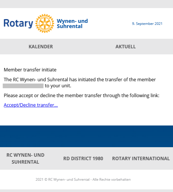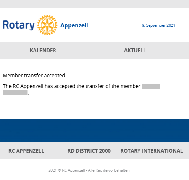 Kada je prelaz prihvaćen, tajnik kluba pošiljatelja dobiva obavijest e-poštom, proces prelaza je završen i član postaje aktivni član ciljanog kluba. Transfer je prikazan kao uspješno završen u oba kluba. Datum ulaska u novi klub nije moguće ručno postaviti. Automatski se računa od datuma odlaska u klubu pošiljatelja.