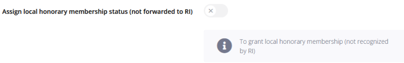Ovo je moguće samo aktivnim članovima kluba . => Lokalno počasno članstvo postavljate u parametrima zajednice. Pogledajte sliku desno.  Kada jednom od svojih članova dodijelite lokalno počasno članstvo, to će se počasno članstvo pojaviti samo u Polarisu. On/ona se ne može prijaviti RI-u kao počasni član jer to krši politiku RI-a. On/ona mora platiti godišnju članarinu RI-u.