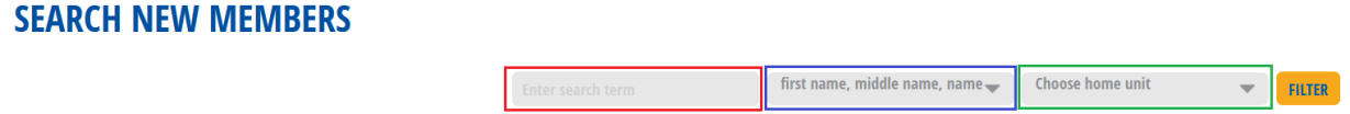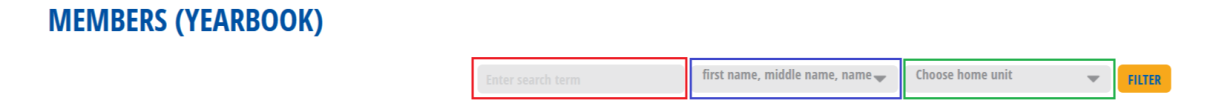 Popis rezultata je na početku prazan, jer je cijeli popis članova ogroman i nije koristan. Potrebno je ograničiti pretragu unosom traženog pojma, a zatim kliknuti na gumb FILTER za početak pretrage.