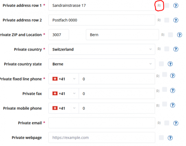 Podatke o članovima koji se šalju RI možete vidjeti na svom profilu i u administraciji. Sva takva polja imaju oznaku "RI" na desnom rubu polja.