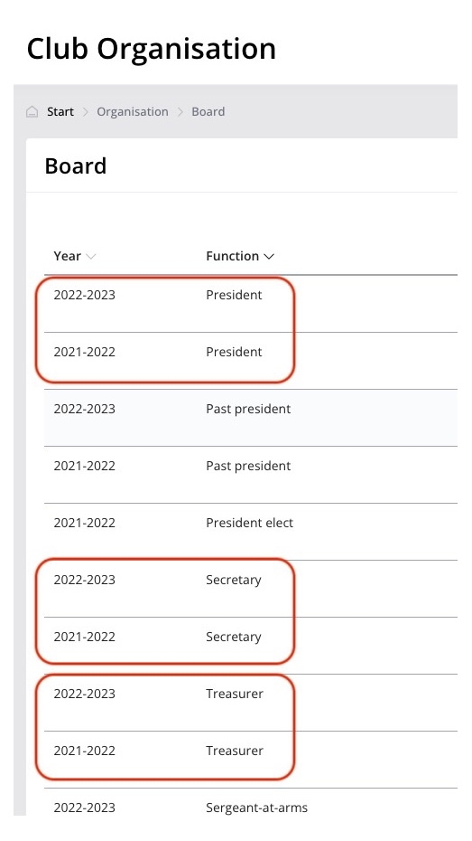 Do kraja 2021.: u slučaju da predsjednik uprave kluba nije mjesto u odboru, predsjednik službenog odbora CICO/webmaster šalje se u RI kao administracija kluba.